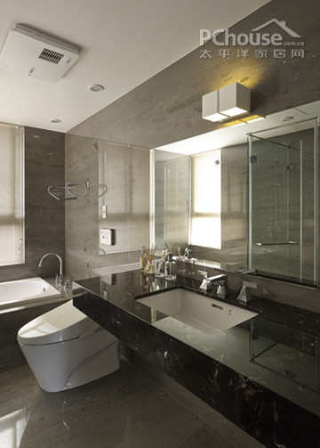 编辑点评:光亮的大理石纹面为卫浴间添加通透感,适度的浴缸、洗手盆设计同时与现代简约的卫浴间气质完美结合,成功营造大气的空间。
