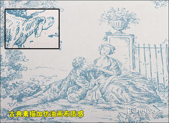 艾仕长岛壁纸印花以仿古素描在油画布肌理表面上呈现,素描给人一种新古典主义的美学质感,同时有着米勒作品中朴实的写实意境。油画布的肌理设计,使壁纸的表现力度具有典雅高尚的气度。