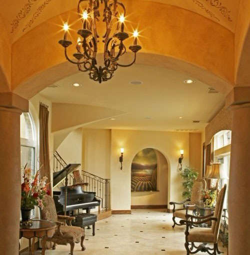 案例小点评:这款案例,颇有艺术家之家的感觉,不仅家装风格为古典欧式风格,楼梯下处还设置了一架三角钢琴,空间尽处的背景墙则为大幅油画,坐在此,你享受的不仅是舒适,还有高雅艺术。