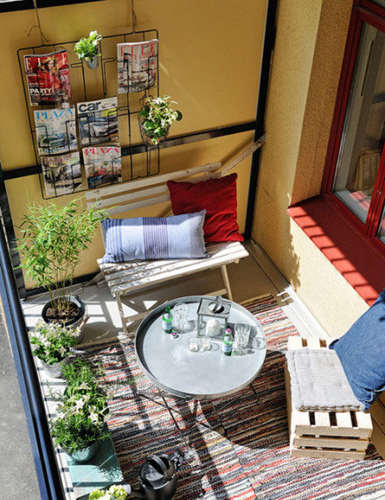 小编点评:开放式的阳台是和阳光最为接近的地方,总能将满满的阳光带到每个人的身边。阳台上的物件、绿植都不需要过于精致,要的就是那个自然和淳朴。简单的几个手工DIY的木制凳子就能取得不错的效果。而书报架也不需要太过正式。