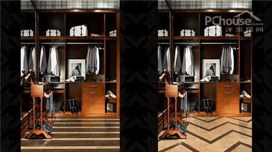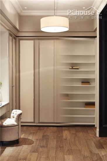 然后我们要面对的是那些几乎永远与你的装修格调格格不入的外观了!长久以来,衣柜的设计师在柜门的外观设计上花去了大量的精力,希望每一款衣柜的门片设计都能成为空间的主宰,成为艺术品。被忽略的事实是,其实大部分的情况下我们并不想让那面衣柜成为卧室的全部,但是这个配角总是不断的以各种俗艳的方式抢戏,难道它就不能消失在空间中吗?如果衣柜的立面占据卧室立面的几分之一,它必须融入墙面之中,才会有和谐的环境。这个想法是决定性的,我们开始设计节点,让衣柜门的表面可以被各种可能出现在墙面上的材料覆盖。终于,我们的衣柜可以披上和房间一样的墙纸或是别的什么材料,甚至是皮革!衣柜可以完全成为空间的一个有利的组成部分,不只是在功能上,而是在色彩和图案上!现在,每一个设计师或者是业主,都有机会决定衣柜在空间中的角色了。