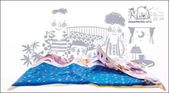 小朋友的一个习惯是睡前阅读。和喜爱熟悉的玩具一样,他们会反复的阅读自己喜爱的读本。如果,把被子变成一个读本,小朋友不就可以每天都看着自己喜爱的读本进入梦乡了?于是,有了这件公益作品。