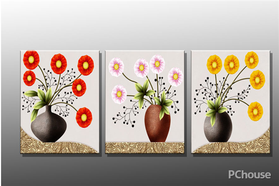 华庭丽娜无框画客厅三联画 卧室挂画 餐厅壁画装饰画现代餐厅花卉 122元