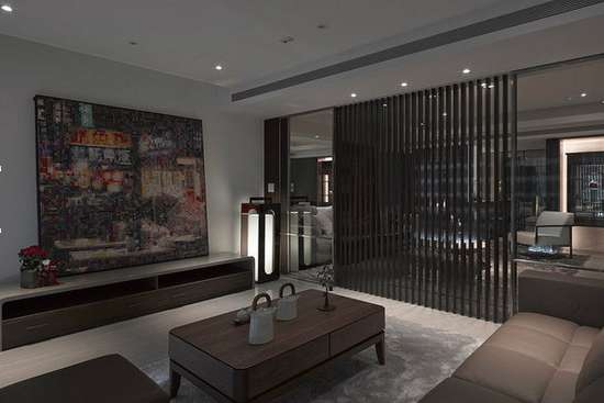家居装修的方案中除了强调对于美感的关注,也考量人本的需求,设计师在主客厅旁设置起居室,以双客厅的方式供家族成员聚会使用。为此在主客体和起居室之间通过客厅隔断玻璃移动门隔开,将这两者在使用起来更加活跃,而且也具有了美感。