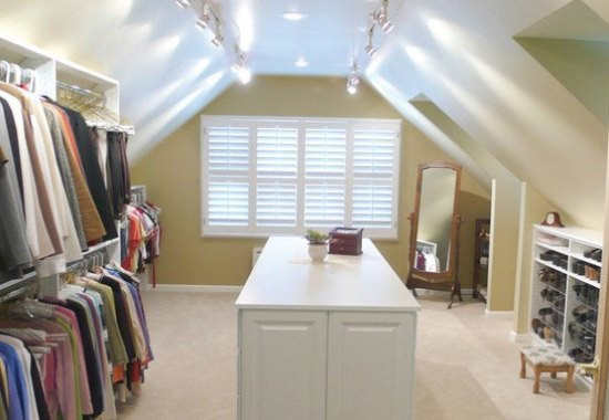 阁楼面积虽小,空间虽然不规则,但刚好是小巧个性的创作地。不妨根据阁楼的形状,量身打造一个专属的个性衣帽间。