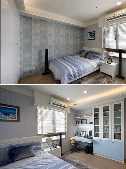 编辑点评:详细讨论中长期的家庭需求与人口结构后,打通其中两间卧房,经过合理的空间配置后,让主卧房能有非常完整的起居机能。