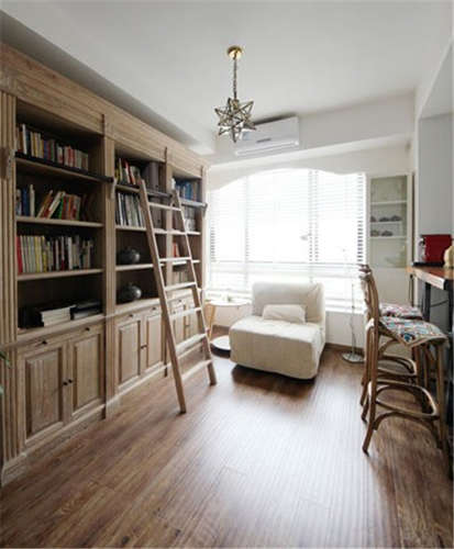 书房的空间只有一套桌椅书架也太过简陋单调,在这之余,添加一个美美的小角落,让书海里疲累时有所休憩,成就休闲惬意的书房生活。