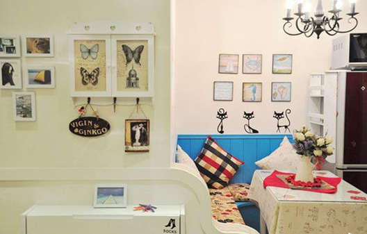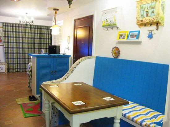 玄关处设立的卡座正好成为其一道靓丽风景,鞋柜也被漆成了地中海蓝色。