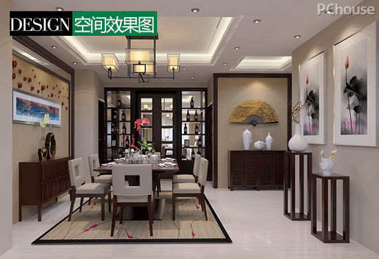 【太平洋家居网 设计频道】本案业主的家,客厅与餐厅相伴相随,共用一个大空间,设计师以中式推拉门和酒柜分隔这两个宁静素雅的区域,使空间分明,利用性高。方正的户型使两面采光充足,在这个有利条件上,设计师重新布局了各个房间门,以深色系木条和浅色墙面搭配电视背景,以大气灵巧的搭配精髓,巧妙布局温馨三居室。
