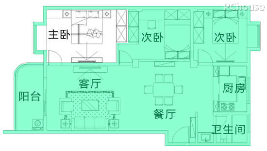 3. 把主卧的门与中间客卧的门改到电视背景这个位置,满足功能需求;