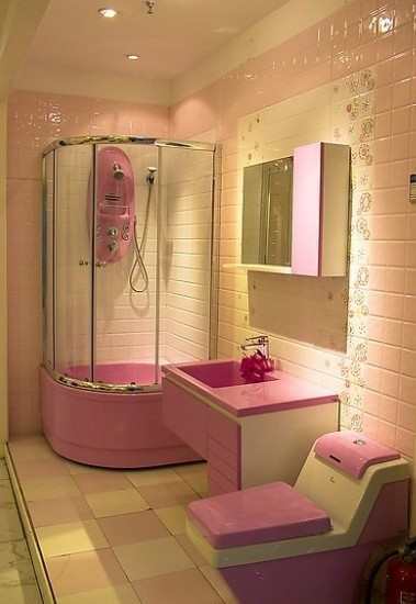 小编的话:同样是粉色系卫浴空间,淡淡的粉色瓷砖与粉白相间的地面结合,使整间卫生间显得尤为粉嫩,从卫浴柜到淋浴间都充满了浓重的粉色元素,相信这款粉色卫生间一定会是不少女孩的心头好吧。