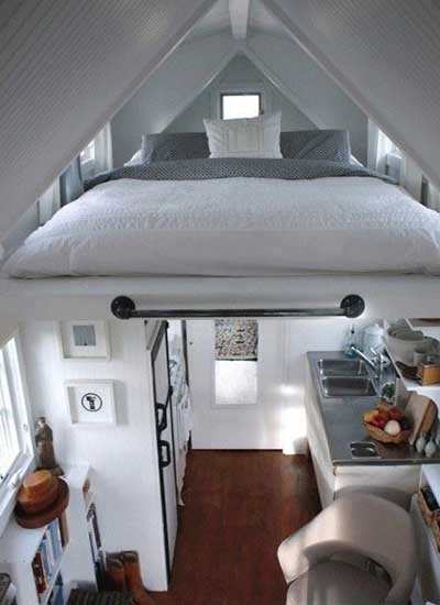 小编的话:小空间完美利用,在厨房上方的尖顶区域设计一个够两人并排躺着的床铺,给单调乏味的烹饪时间增添了不少乐趣,所有的功能区都集合在一个狭长的空间中,所以每寸空间都不能浪费。