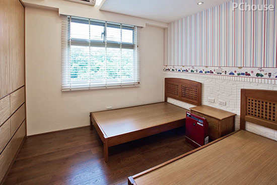 编辑点评:主人家小朋友喜爱的汽车和足球,设计师将设两个元素重新组合绘制了全新图案。以鲜艳黄色为床头布景,窗帘搭配轻松、自然系的绿色,突显小主人活泼的个性。
