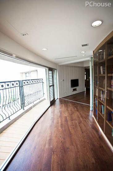 编辑点评:四楼书房是家人一起阅读、聊天的空间。天际线条是留白设计中的点缀元素,深色木料桌椅搭配出平易近人的轻松氛围。