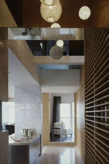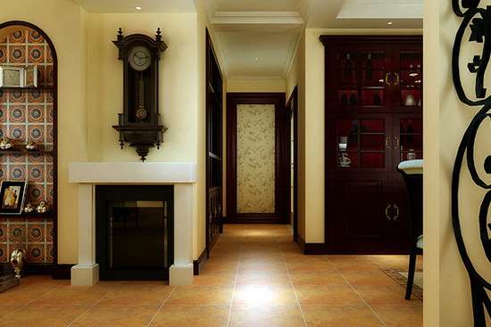 这个客厅走廊通过木质的间隔进行设计给人一种自然的感觉,而吊顶的设计使得走廊在温馨的感觉中还给人呈现出一种时尚的魅力。