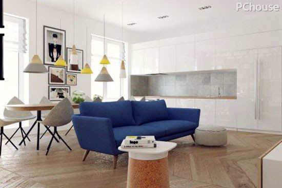 小编点评:没有精美的摆设,没有华丽的样式,只有简单流畅的线条。醒目的蓝色布艺与温润的木质地板平衡了空间的冷艳,呈现出一种内敛却富有质感的个性美。