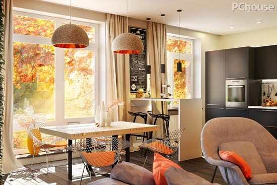 小编点评:当净透日光拂过窗外的秋意穿透入室,停留在微带休闲感感的中岛吧台中,映照出满屋温馨时尚的同时,增添了整体空间的视觉趣味。