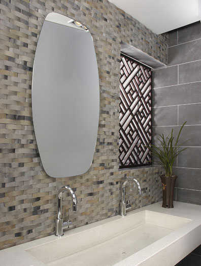小编点评:“秦砖汉瓦”在整体设计中,延用了中式内敛的特点。贯穿式主题墙的理念,自然地分离了卫浴间的干湿区。墙面上斑驳的瓦片砖,带着岁月流逝后的沧桑痕迹。不免让人想象明清时代贵族之家高耸的屋檐上片片青瓦,大气而古朴。