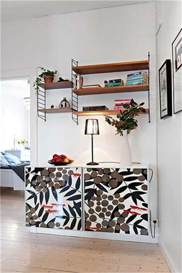 41平方的小公寓,得到了非常好的利用,看起来很大,适合没有小孩的夫妇居住,开放式的厨房和客厅相连,饭桌类似小的吧台,适合4人就餐,柚木地板,卧室里有一个双人空间,滑门衣柜。卧室里还有一个小阳台。大厅宽敞,有书架,可以摆放一些书籍与收纳箱,可以当作阅读区。在入口处有足够的空间放帽子架,鞋架。