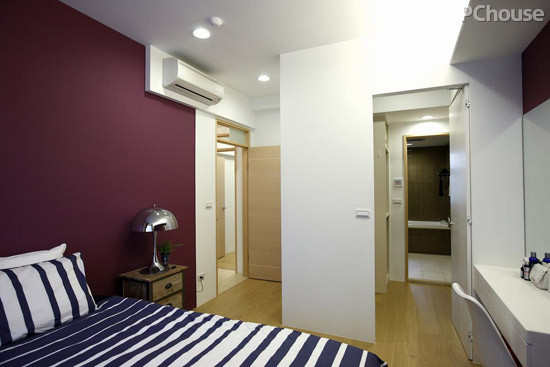 小编点评:卧室里自然简约中一抹强烈的葡萄紫浪漫了空间,也营造了舒适自在的休憩氛围;巧妙的隔断设计,兼顾了储物的功能,一举两得,让空间利用最大化。