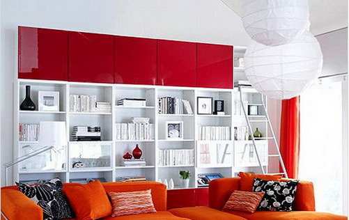 如果家里的墙面不宜大动干戈,那也不用伤心,可以用一个折中的方法。买几个大型的收纳架,外面用布艺围住,既完成收纳任务,同时,更换不同的布艺可以呈现不同的客厅风貌。