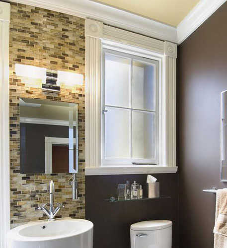 面盆采用挂壁式,最大限度节约空间,为卫浴间制造更多宽敞感,宽度等同于马赛克瓷砖铺设出的区域,底端的弧形毛巾架,是最最贴心的设计。