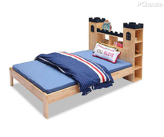 推荐理由:儿童床造型新颖,有城堡造型的床头,趣味十足,也增强了收纳功能;天然的原木材质,牢固而健康;床边缘的圆角设计,为爱玩耍的儿童提供贴心的呵护。