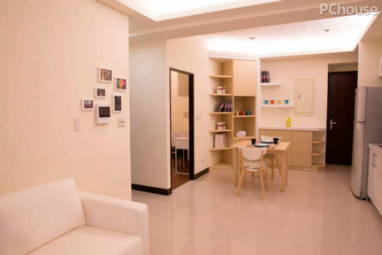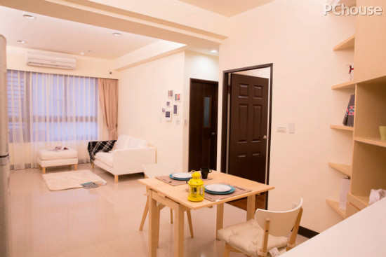 小编点评:进门首见开放式餐厨区,利用冰箱的厚度设置隔墙,化去开门见灶的风水问题。