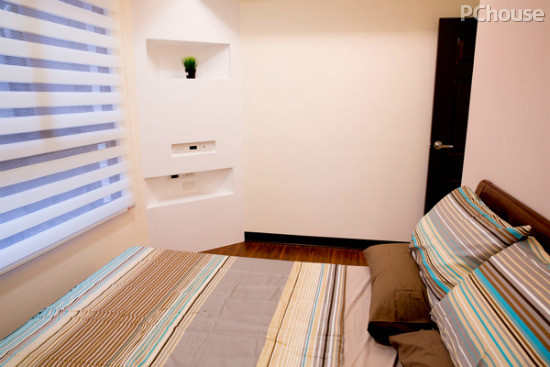 小编点评:配合床头位置,电器机能规划于对向的一角,下方贴心设置电器充电区,小空间也能享受赖床看电视的小确幸。