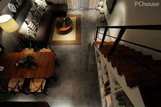 编辑点评:站在楼上俯瞰,楼下的画面俨然成为一种静止的画面。设计师呈现的这种LOFT生活方式,让人感觉到在繁华的都市中,也能体验到不羁的自由和洒脱之感。