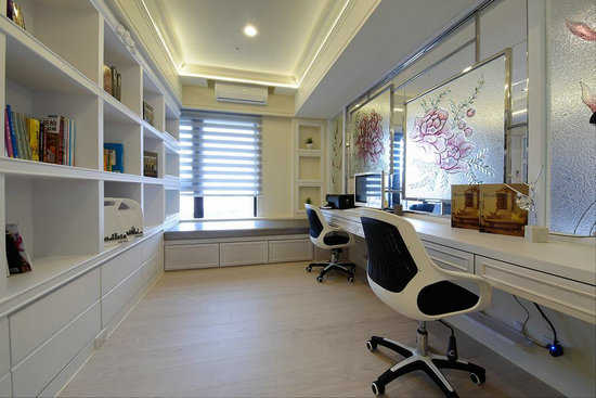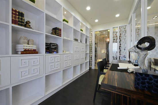 编辑点评:白色浮雕质感的东方线条,于书房带进另一种低调风华。