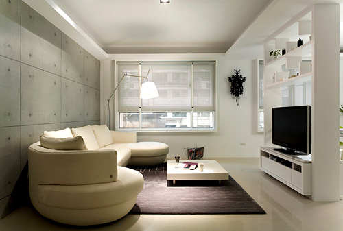 编辑点评:沙发后方以仿清水模的壁纸形塑出低彩度的空间调性,与白色的纯雅互相融合,对应出高雅舒适的张力表现。