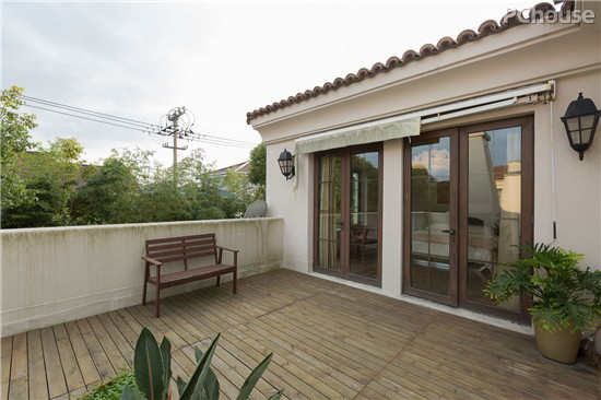 编辑点评:推开卧室之门便来到一个宽敞的露台,是主人与朋友举行私密派对的好地方。一对壁灯在傍晚十分将微微亮起,为整个建筑点亮婉约之光。