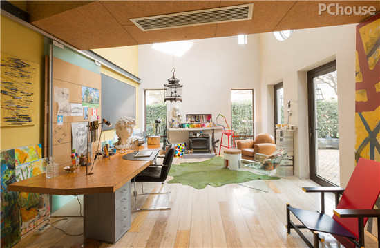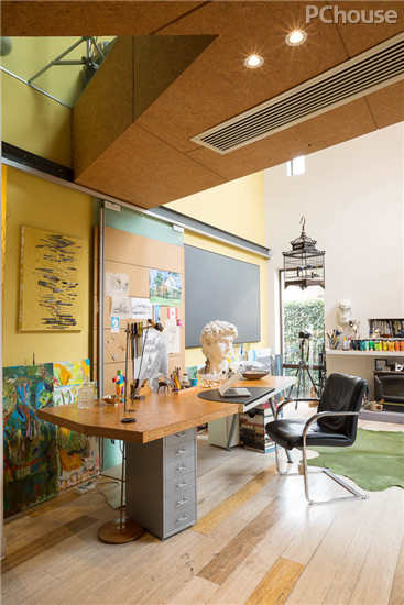 编辑点评:传统的绘图工具隐藏于黄色墙面,正用新的方式陪伴着主人。各种配饰和元件的混搭,为之呈现了琳琅满目的视觉冲击,令人想尽可能的睁大眼睛吸收这多姿多彩的空间形象。