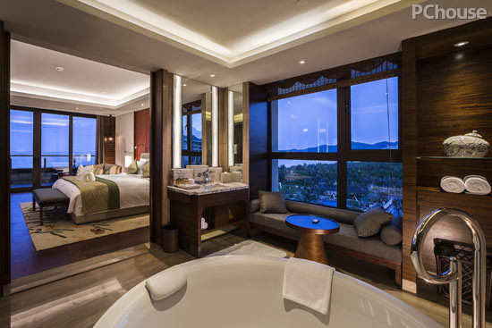 编辑点评:开敞的玻璃门窗取代了生硬的外墙,巧妙地将自然的阳光、空气引入室内,使室外的园林、海景与室内空间融为一体。打破了固化的空间印象,带给旅客摩登的视觉享受以及舒适浪漫的度假氛围。