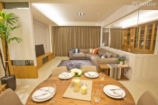 小编点评:在客厅处,设计师留下了一片宽适的活动空间,为一家人休闲、乐活提供了互动场地。