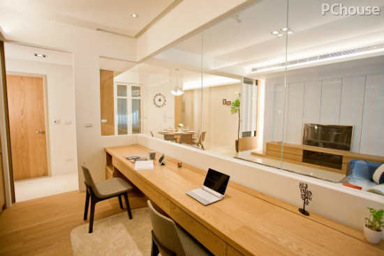 小编点评:半穿透的书房设计,延展了视觉,串联起内外,而房内的木质用色也和空间颜色相互呼应,让温馨氛围无尽蔓延。
