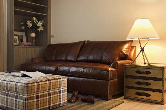编辑点评:保留完整的套房机能,目前作为书房使用的空间,以带点复古味道的怀旧风格家具布置,点上一盏灯成为屋主最爱的阅读角落。
