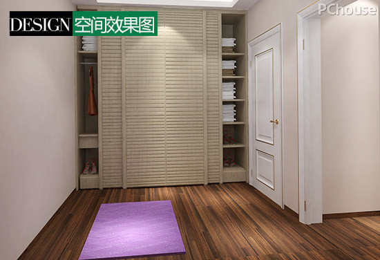 5. 把院馆和储藏室改到主卧里面去,进门衣帽间嵌入式衣柜合理利用空间,屋主可以在这里练习瑜伽或者以后用作婴儿房。