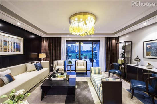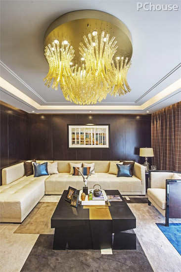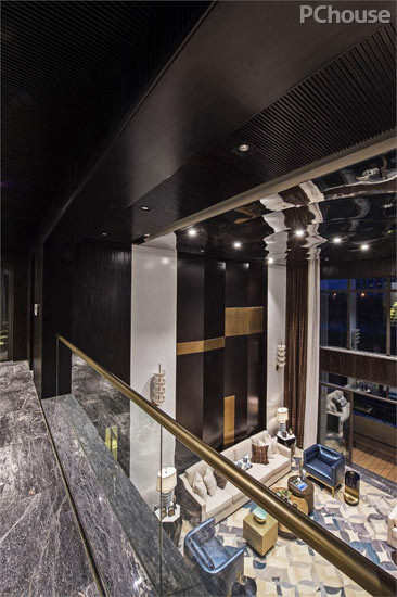 公共区域顶面天花是一个通透质感的镜面不锈钢材质的“水滴”造型,犹如雨后最后一滴水珠,在平静的水面上荡漾开来...空间整体为简约的现代风格,客厅壁灯为白色云石水滴造型,地毯为水波纹涟漪图案,水滴元素相互交织,展现出诗意东方的美。