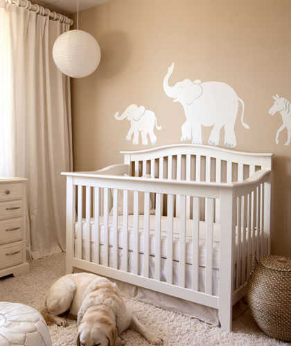小编的话:简约风格的婴儿房中,没有多余的装饰,卡其色墙面上位数不多的动物图案却增添了整个空间的童趣感。在整个房间的地面铺上了柔软的米白色地毯,这样的婴儿房第一眼看上去就会有种很舒服的感觉。