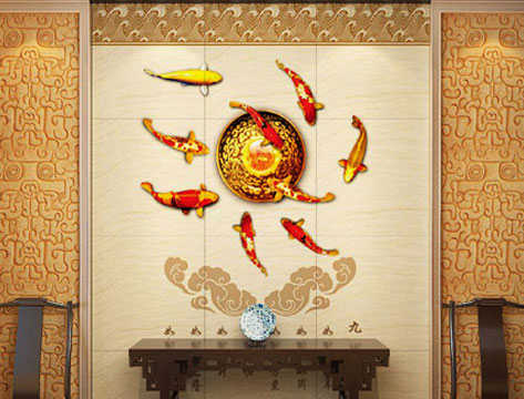 鲤鱼之寓意犹如凤之涅槃,蝶之蜕变,大成之后将青云直上。该背景墙的着色与墙面颜色相得益彰,使得整体效果更蕴涵变化,令传统风格不再显得呆板。