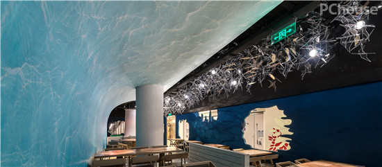 编辑点评:清新渐变的蓝色,甚至在墙面上还能捕捉到海面微波粼粼的样子。人们在这个未知的世界里寻找刺激味蕾的“宝藏”。
