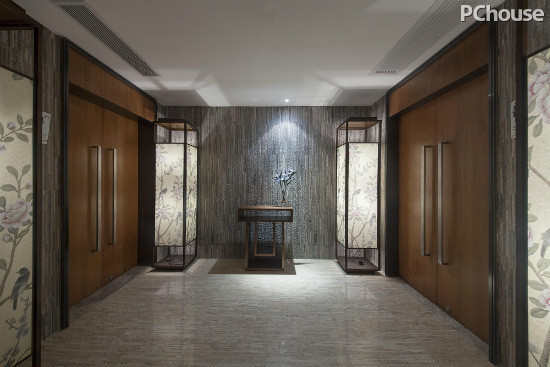 编辑点评:走廊设计以“沉稳”为主线,采用了灰色、暗红木色为主色调,展现了走廊空间的深沉之重。