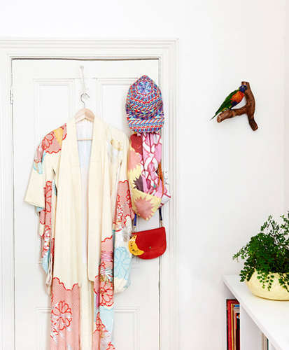小编的话:莉莉卧室入口处特写。和风浴袍,嘻哈鸭舌帽,卡哇伊单肩小包,爱丽丝一直说莉莉是个淘气古怪的精灵,什么风格都感混着来。在房间设计时,莉莉特别要求做了一排低低的墙面书架,她说,这样我就能坐在书架上看书了。