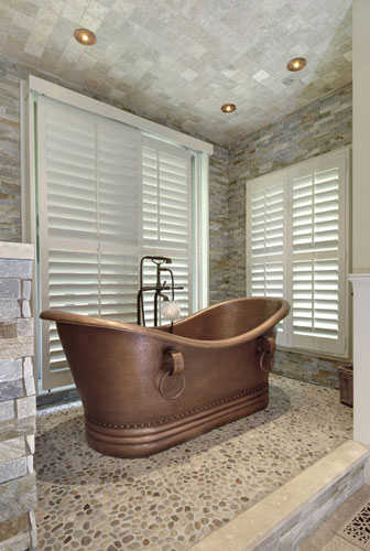 现在人们都了解需要寻求一个远离科技的庇护;一个可以真正放松沉思与冷静整理分乱思绪的地方。最棒的场所莫过于水疗中心与水疗饭店,这些都是过去逃离与充电的地方,但现在逐渐被居家设计的市场所影响。设计师与建筑师将这些现代人放松的秘密基地,加入居家浴室的设计之中,包含蒸气浴、桑拿、按摩浴缸、热水池等。以下图吸引人的浴室为例,结合桑拿与蒸气浴的设计,为居家水疗设计做完美的诠释。事实上,在美国有百分之五十以上的新成屋皆有按摩浴池的设计。居家的水疗设施每年以百分之十的速度增加。