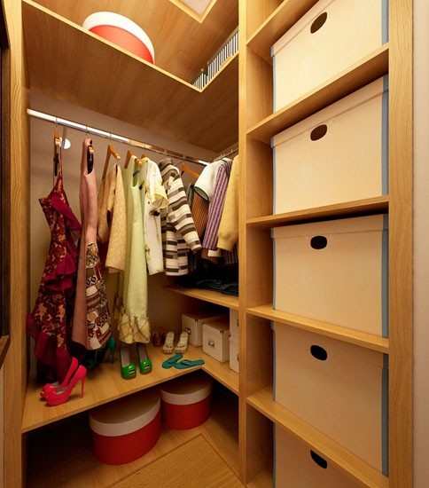 拐角处的衣帽间,非常实用的收纳区。多层的设计能更有效的利用这些收纳空间。