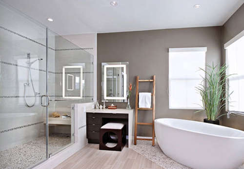 不规则的地面分区,划分出卫浴空间的多个功能区域。