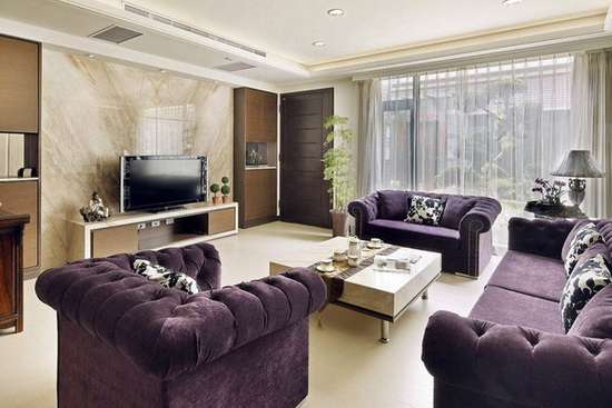 现代简约风格客厅设计配上瓷砖装饰的电视背景墙,让整个客厅更加的时尚简约,同时也能让人感受到瓷砖的自然魅力。