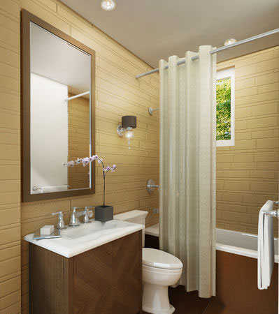 2.在意想不到的地方增添自然光线。在淋浴室上方开一个小口,让阳光从这里透进来吧。